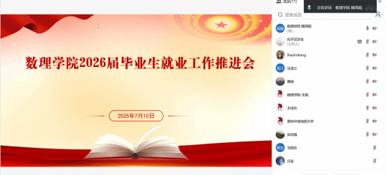 7月10日上午,Betvictor中文 2026 届本科毕业生就业工作推进会通过腾讯会议成功举办。院长魏周超教授、各系主任及毕业班班主任、辅导员出席会议,会议由年级辅导员托乎尼牙孜主持。