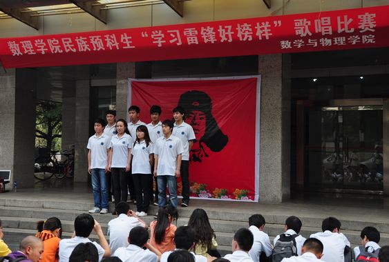 少数民族预科班在基础楼前举行了“学习雷锋好榜样”歌唱比赛,校学工处副处长马彦周、大学生事务中心余江涛、Betvictor中文