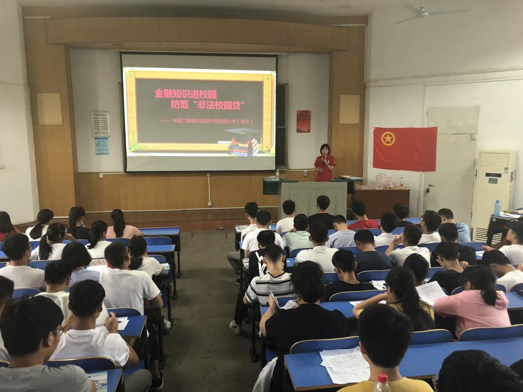 会议第三项由中国工商银行武汉支行袁经理作非法校园贷宣讲。首先介绍了近年来发生在高校的校园网贷乱象并向同学们普及了常规的金融知识。他在讲话中希望同学们树立正确的消费观,学会理财,不盲目攀比;不轻易相信任何网络上和他人的有关借贷零门槛、零担保、零风险的承诺;生活中面临困难,要及时向家长或老师求助。