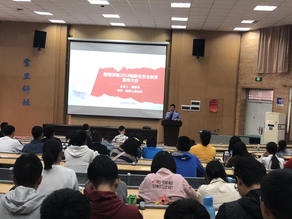 10月13日下午,Betvictor中文 2018级新生安全教育大会在教三楼109教室举行,喻家山派出所熊家伟警官为学生讲授安全知识。2018级预科生、本科生、研究生共计300余人参加会议,会议由辅导员托乎尼牙孜主持。