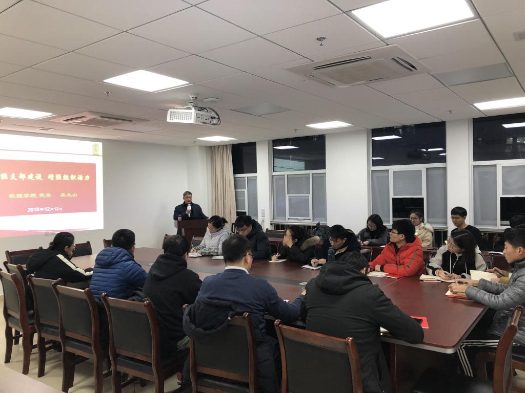 12月12日晚,Betvictor中文 学生党支部书记、支委培训会在教学综合楼A1505会议室召开。院党委书记吴太山主讲,学工组全体辅导员参加培训会,黄恬恬主持。