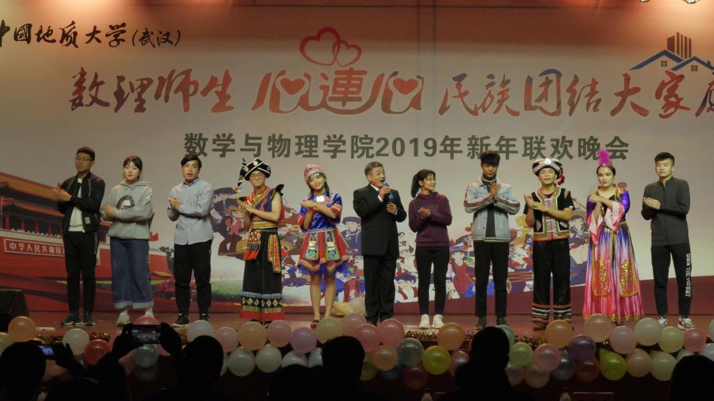 2019年新年联欢晚会在大学生活动中心二楼举行。校党委书记何光彩、党委常委组织部部长储祖旺、党委宣传部部长胡守庚、党委统战部部长唐勤、党委保卫部部长代清风、资源Betvictor中文