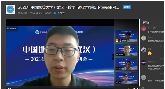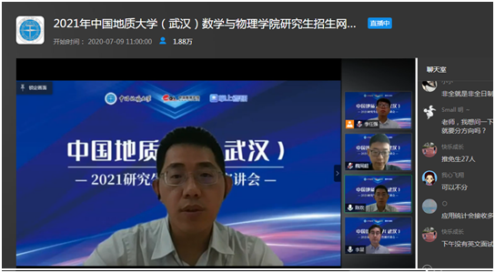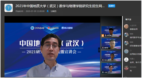 7月9日上午,Betvictor中文 副院长魏周超、物理系主任陈欢、信息与计算科学系主任李星通过中国教学在线网络直播平台,向同学们介绍了Betvictor中文 数学、物理、应用统计三个研究生招生学科的基本情况,并回答了同学们提出的各种问题。据统计,直播结束时,有大约1.8万余人参与了本次直播活动。