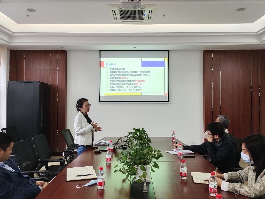 科发院殷茵老师首先介绍了国家科学技术奖、部级科学技术奖、省级科学进步奖、社会力量奖等四类科技奖励体系,并对科学技术奖申报中的专家提名、单位提名、形式审查等流程作了详细讲解。殷茵老师具体分析了我校近五年以来申报和获奖的具体情况,阐述了科研团队前期学术成果积累的必要性和申报书撰写质量的重要性,强调了撰写自然科学奖申报书的各步骤注意事项。报告结束后,吴春明副院长和殷茵老师就与会者提出的报奖问题做出了详细耐心的解答。最后,魏周超副院长希望全体科研人员高度重视奖励申报工作,注重成果积累和凝练,细心撰写申报材料,突显科技成果创新点,同心协力,争取科研奖励工作有所突破。