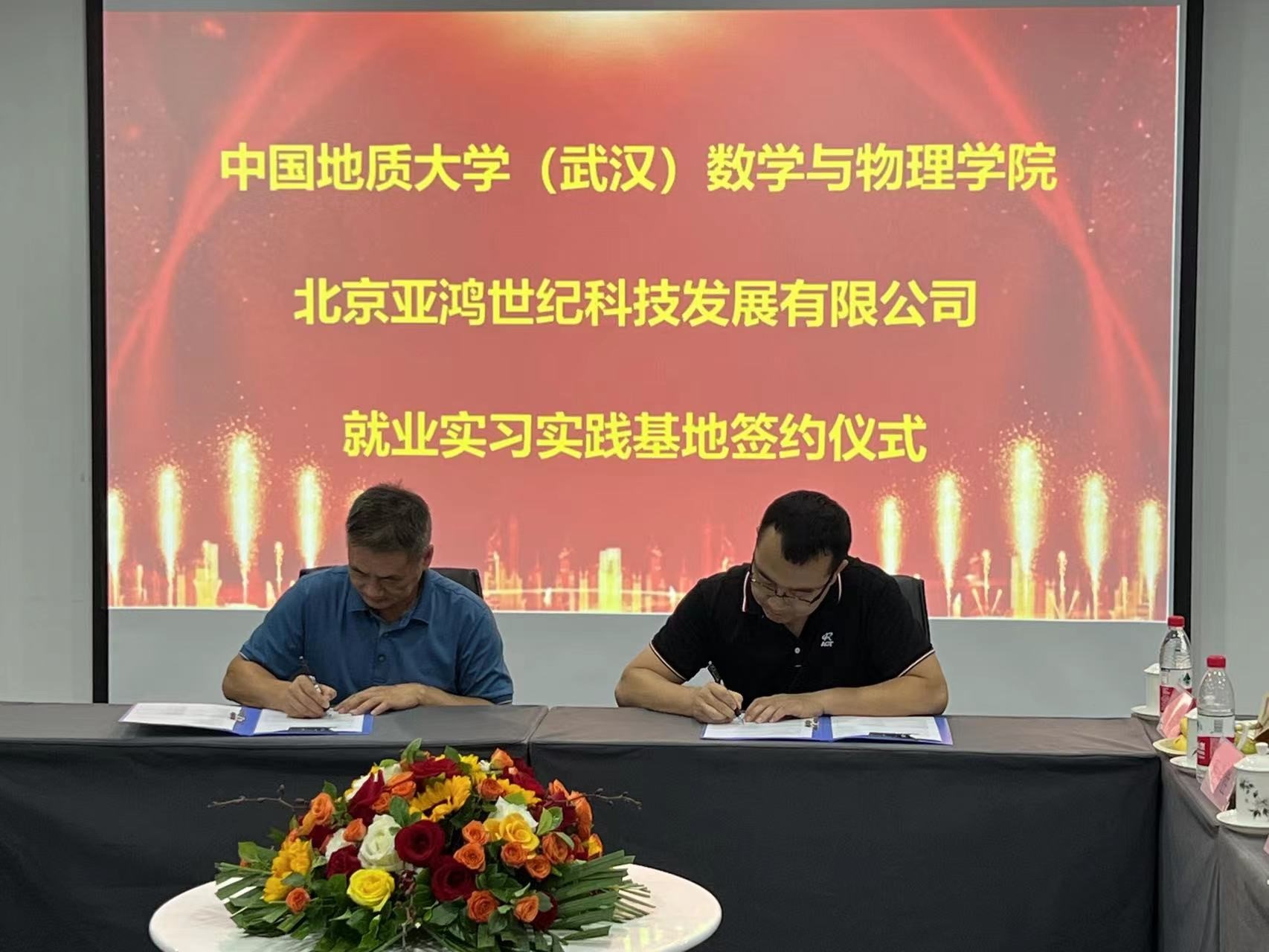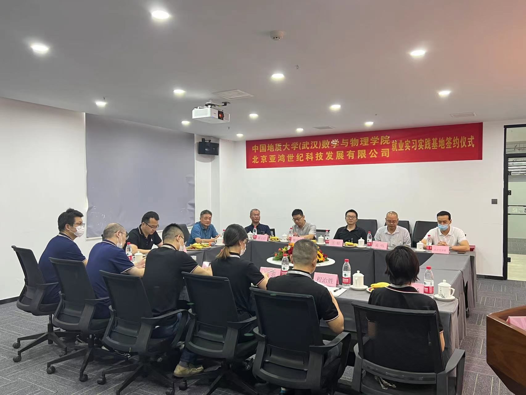 为推进产学研合作,深化本科人才培养模式改革,提高数学类本科人才培养质量,落实访企拓岗促就业专项行动工作要求,加强校企合作,9月30日,Betvictor中文 与北京亚鸿世纪科技发展有限公司(以下简称“亚鸿公司”)签署中国地质大学(武汉)Betvictor中文 就业实践基地协议。Betvictor中文 书记吴太山、Betvictor中文 院长郭上江、副院长魏周超、数学与应用数学系主任王毅、信息与计算科学系主任易鸣、辅导员托乎尼牙孜与北京亚鸿世纪科技发展有限公司总经理兼党支部书记林飞、数据智能分析部总监熊骁、信安产品研发部总监刘俊、产品交付部副总监陈凌浩、启航部副总监刘蕊、数安产品研发部副总监程治胜、研发管理部副经理代春娇以及人力资源部经理李莉等部门负责人座谈交流,共同见证签约。