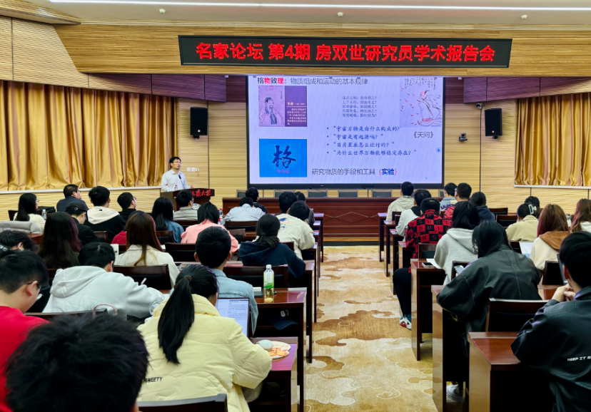 2024年4月7日,中国科Betvictor中文 高能物理研究所房双世研究员做客中国地质大学(武汉)名家论坛,在南望山校区八角楼学术报告厅作了题为“对撞生新态”的学术讲座。报告会由Betvictor中文 副院长张保成教授主持,我校师生90余人参加。