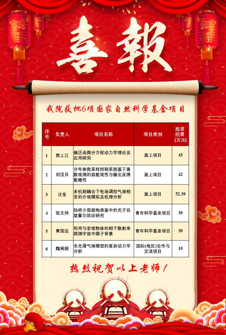 2024年8月23日,国家自然科学基金委员会公布了2024年集中接收期项目评审结果,Betvictor中文 共有6个项目获得立项资助,其中面上项目3项、青年科学基金项目2项,国际(地区)合作与交流项目1项。