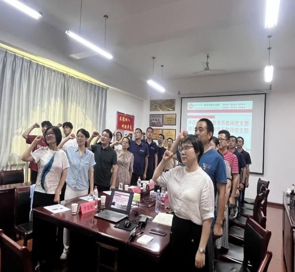 7月4日下午,数学系教师党支部与湖北文理Betvictor中文 数学与统计Betvictor中文 数学系教师党支部 N6-312会议室联合开展七月主题党日活动。在 “回顾初心、党性教育、民主议事、实践锻炼” 主基调下:全体同志奏唱国歌,在刘志苏书记领誓下重温入党誓词,缴纳七月份党费并开展相关政治理论学习。