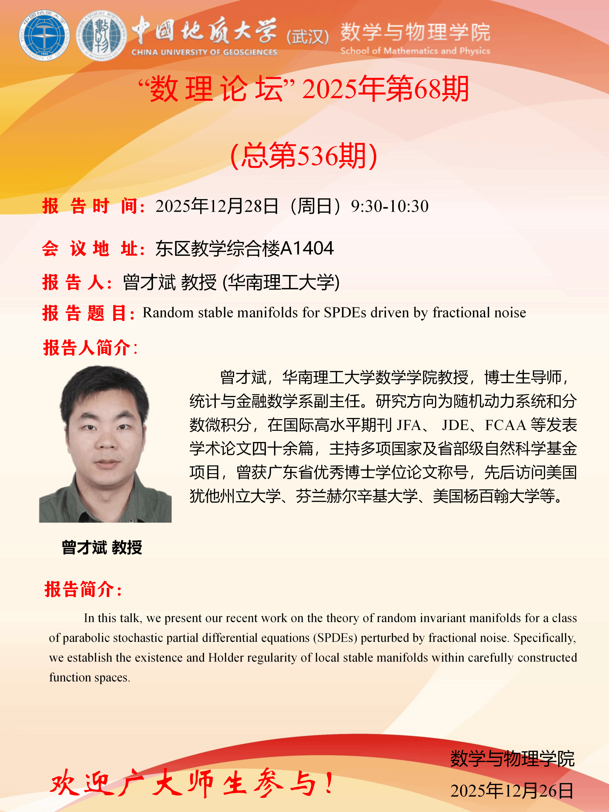 2025年12月28日曾才斌教授学术讲座:Random stable manifolds for SPDEs driven by fractional noise