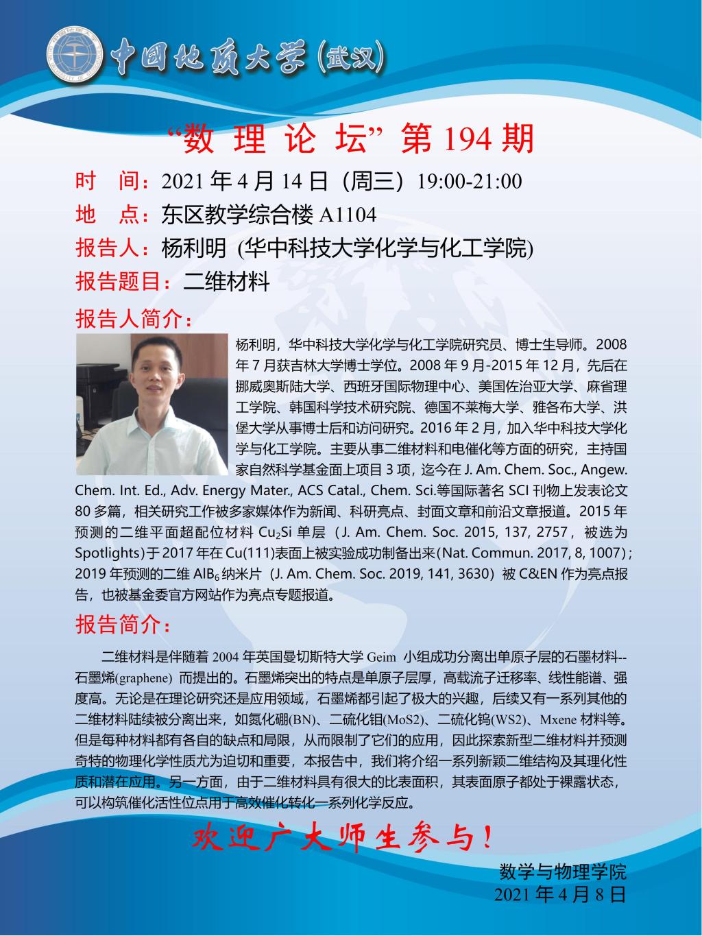 "数理论坛"第194期:二维材料