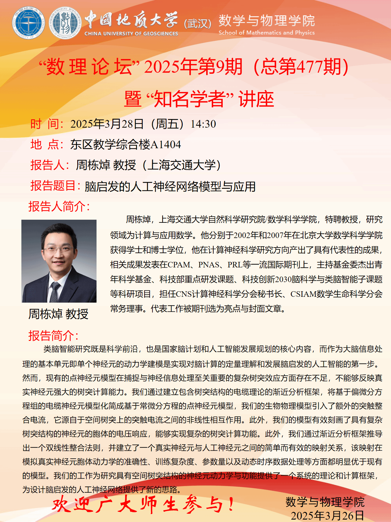 2025年3月28日周栋焯教授学术讲座:脑启发的人工神经网络模型与应用