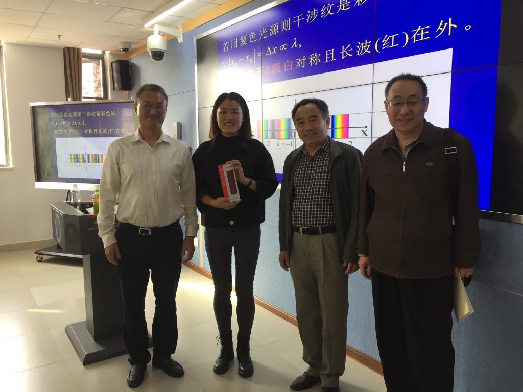 10月24日上午,Betvictor中文 领导吴太山、郭上江、张光勇、程永进等一行7人前往未来城校区,看望当天在新校区上课的李铁平、汤型正、黄刚、丁思静、谢宜龙等老师,给每一位在新校区上课的老师赠送1个保温杯。院领导还实地考察刚刚投入启用的公教2楼的每个大学物理实验室,检查了其中将用作老师们辅导答疑、批改作业、课间休息的117室的设施配置情况,商请物理实验中心为每位老师设置二维码钥匙,扫描二维码即可开门。院领导现场还决定配置10个公用小拖车,方便老师携带作业本。