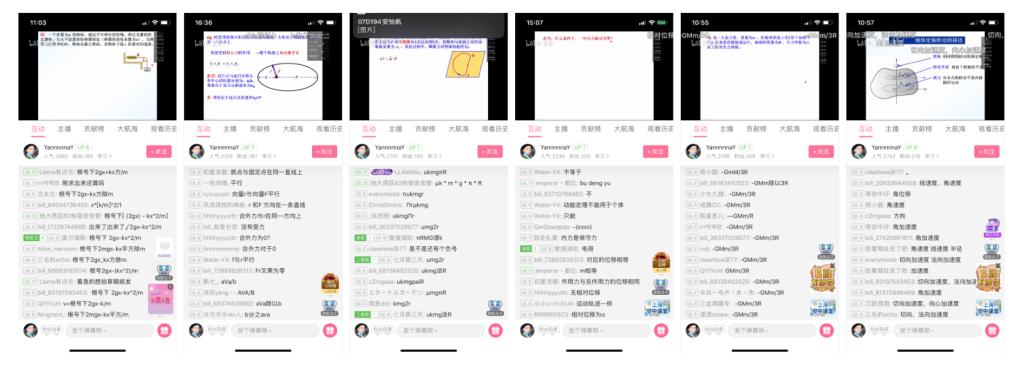【课堂教学】吴老师每周固定在B站上直播4次,每次直播的人气数大约在2~3000,也有外校的学生旁听以及同吴老师交流。她始终认为,在大学物理的教学过程中,以知识为载体引导、锻炼和培养学生的思维和能力是十分重要的,所以在直播授课中,她常以问题启发式教学为主,同时在讲解一些经典例题时也会让同学们先独立思考,鼓励大家以弹幕的形式踊跃回答问题,或者及时提出自己的疑问。在弹幕中回答问题的同学以截屏的形式课下找她认领“奖励”。以此方式增强课堂的互动,同时获得及时的课堂反馈。每一次的设问,同学们的“弹幕”参与度都非常的高。
