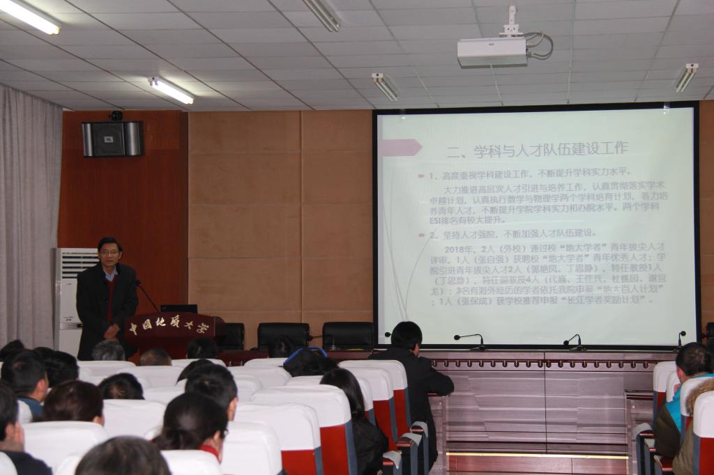 院长刘安平代表Betvictor中文 领导班子作了2018年工作报告。他在报告中全面总结了Betvictor中文 一年来的各项工作,重点介绍了在党建与思想政治工作、学科及人才队伍建设工作、本科教学工作、科研工作与国际交流、研究生工作、实践教学与安全保卫工作和学生工作等方面取得的突出成绩,并就2018年Betvictor中文 的财务使用与管理情况进行了报告和说明。