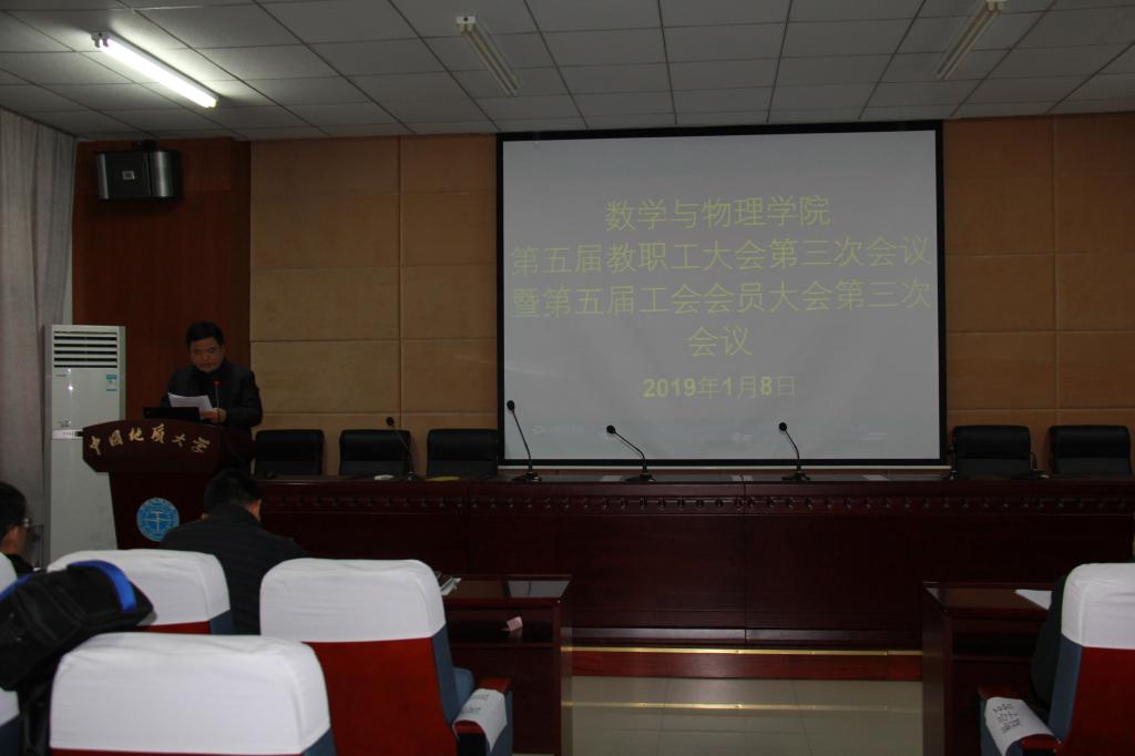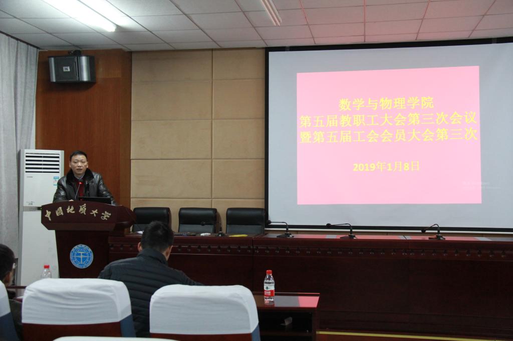 2019年1月8日下午,Betvictor中文 第五届教职工大会第三次会议暨工会会员大会第三次会议在学海楼109会议室隆重召开。校党委副书记王林清、校工会常务副主席喻芒清应邀出席大会,Betvictor中文 党政领导及全体教职工参加会议。大会分两阶段进行。