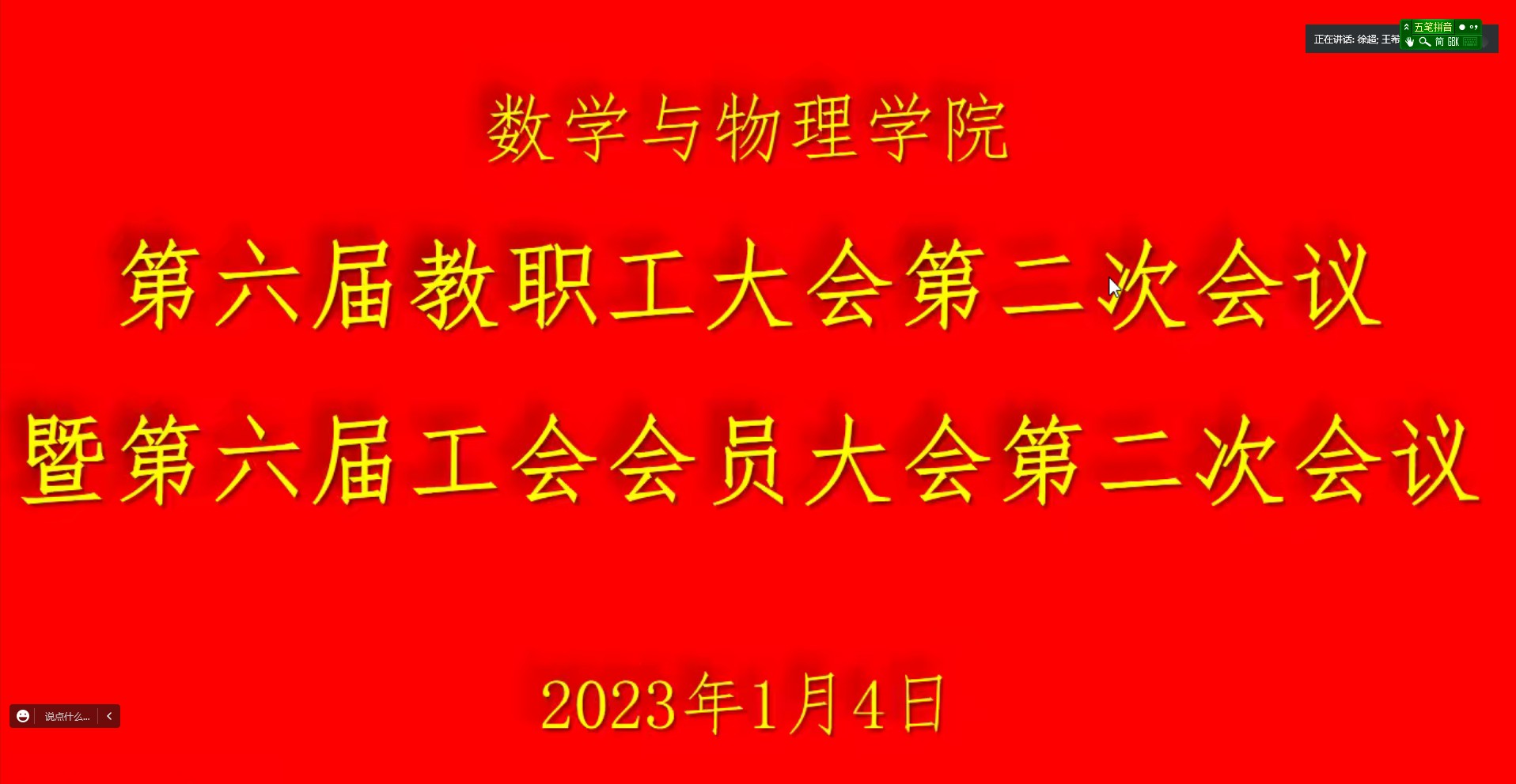 2023年1月4日上午,Betvictor中文 第六届教职工大会暨工会会员大会第二次会议隆重召开。由于疫情原因,会议以线上腾讯会议形式召开。Betvictor中文 党委书记吴太山、院长郭上江及Betvictor中文 全体教职工参加会议。院党委副书记徐超主持会议。