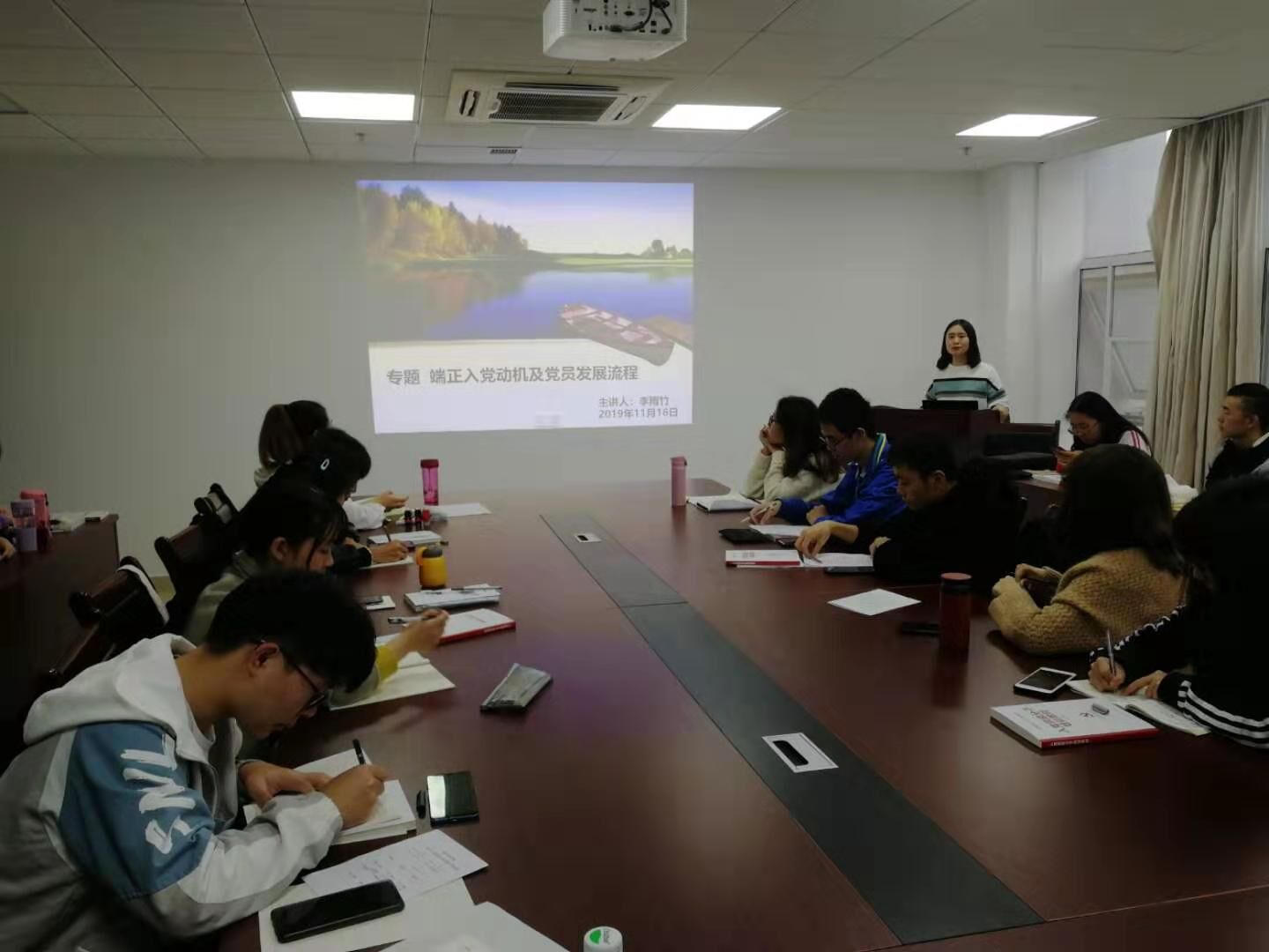 11月16日下午,Betvictor中文 第66期入党积极分子培训班第三讲在东区教学综合楼A1505会议室举行。党委组织部李雨竹老师主讲,主题为端正入党动机及党员发展流程。孙宇涛老师主持。