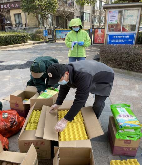 我们的主要工作是负责和定点的商超进行对接,统一收取小区居民在网上购买的各种生活物资,分拣完成以后再送到每户居民的单元楼门口,做到零接触的物资传递。对于那些孤寡老人和行动不便的人,我们会把东西送到家门口。在严峻的疫情面前,这样做能够尽可能的减少大家的外出,防止交叉感染造成的疫情扩散。